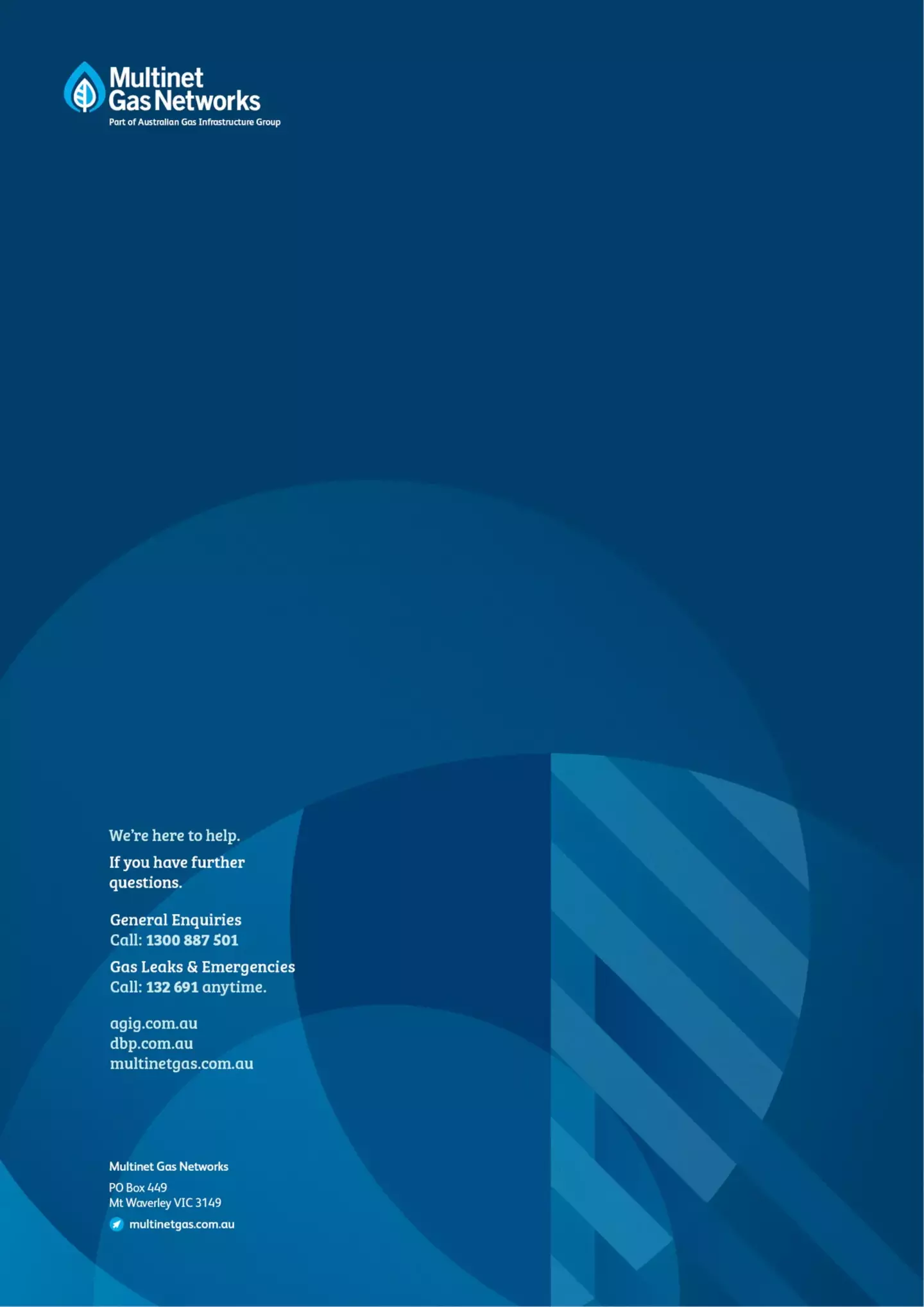 To report an outage for your specific premise, or if you're unexpectedly without gas supply and want more information, please contact our Gas Supply Faults hotline on 132 691.